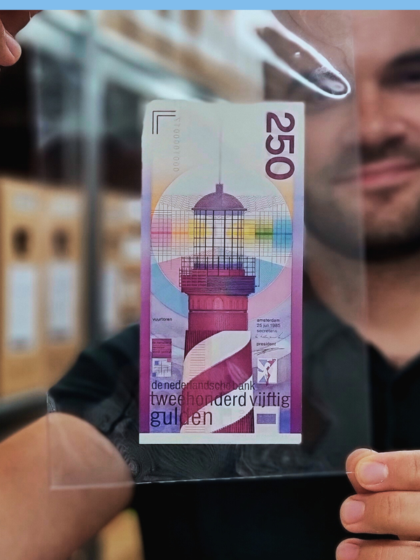 De Nederlandsche Bank’s money collection contains more than 400,000 objects, small and large, unique and mundane. Every object has its own special story. Like the beautiful 50-guilder note The Sunflower, ancient Chinese banknotes and a special gold coin featuring a portrait of Constantine the Great. Discover all these stories and find out more about the history of our money.