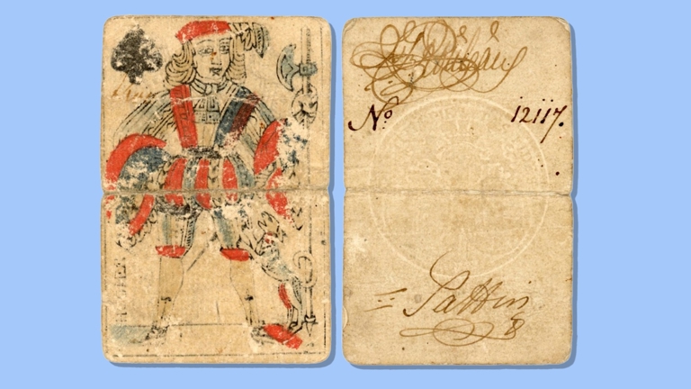 Wat hebben suiker, papegaaien en speelkaarten met geld te maken? In de 17e en 18e eeuw was Suriname een Nederlandse kolonie, en betaalde men met ‘geld’ in de vorm van suiker, papegaaipenningen en … speelkaarten. Weinig van dit kaartgeld heeft de tand des tijds overleefd. Enkele exemplaren uit de Nationale Numismatische Collectie van DNB zijn in 2024 in bruikleen gegeven aan het Numismatisch Museum van de Centrale Bank van Suriname, in dit persbericht lees je daar meer over. In deze bijdrage duiken we in deze bijzondere vorm van geld.