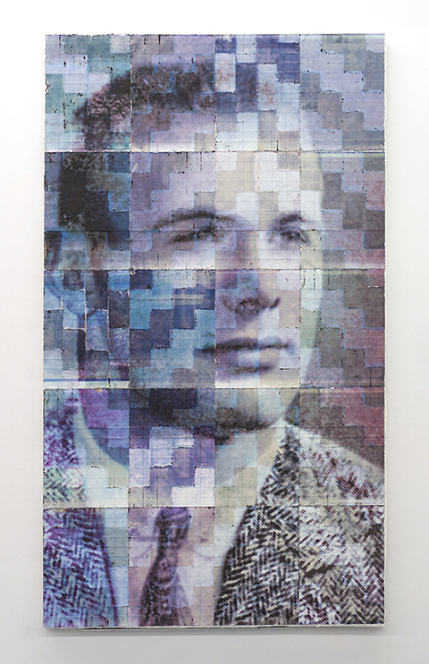 Dit werk is een afbeelding van een jonge Donald Rumsfeld uit 1954. Jaren later was hij als staatssecretaris van defensie van de Verenigde Staten medeverantwoordelijk voor de Amerikaanse inval in Irak in 2003. Een inval waarbij veel burgers zijn omgekomen. Rumsfeld heeft veel militaire onderscheidingen gekregen. Het chevron pattern uit de titel van dit werk staat voor het blokjespatroon. Dit verwijst naar de pijlvormen op de kleine stukjes stof die militairen op hun uniform dragen. In dit werk stelt de kunstenaar een vraag aan jou: verandert jouw kijk op de jonge Rumsfeld vanwege zijn latere betrokkenheid bij de oorlog?